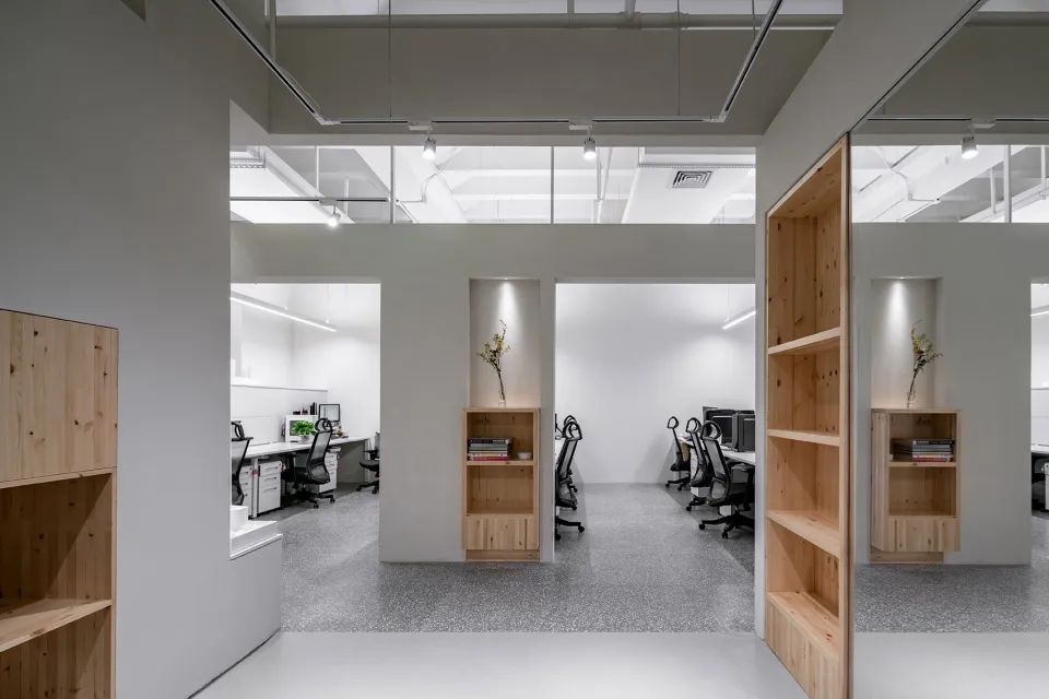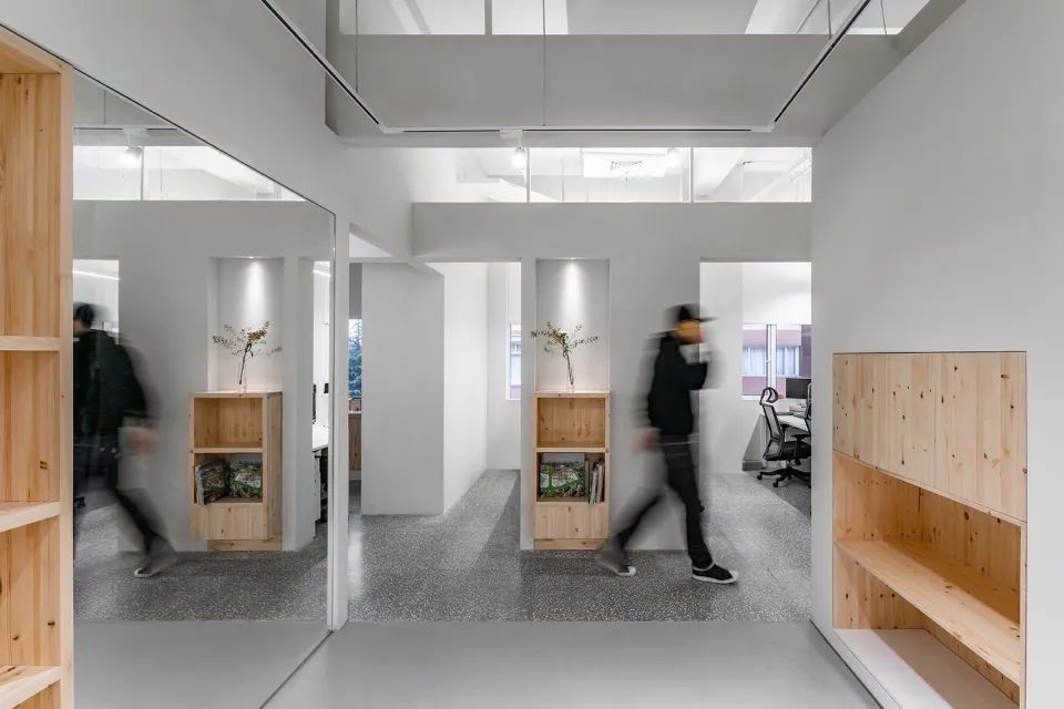 這是一個“解構”的新型辦公室。與傳統(tǒng)的辦公場所不一樣,這里強調的是開放中又有私密,互動和獨立相容。從整體來看,這是一個風格較為硬朗粗獷的空間,我們融入了“微工業(yè)風”的元素,但墻體一白色覆蓋,則彰顯出柔和與想象空間。